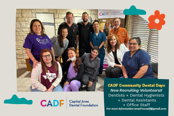 The CADF Community Dental Day initiative is changing the landscape of charitable dental care in Central Texas. This large-scale program engages agencies and organizations throughout the region, activates multiple dental offices and rallies more than 85 volunteers who deliver free, life-changing care to our neighbors in need
